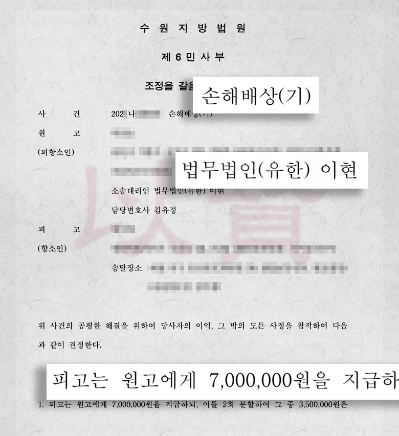 재판부는 양측의 입장을 고려하여 조정을 권고했고, 최종적으로 매수인이 의뢰인에게 700만 원을 지급하라는 조정 갈음 결정을 내렸습니다. 상대방이 계약 자체의 무효를 주장하며 한 푼도 줄 수 없다고 버티던 상황에서, 의뢰인은 법적 대응을 통해 상대방의 아파트 계약 파기에 대한 책임을 명확히 하고 실질적인 손해배상금을 받아내며 사건을 종결지을 수 있었습니다.