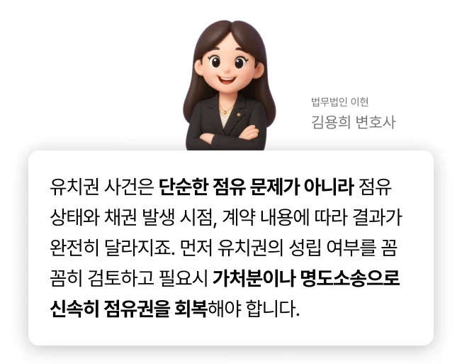유치권은 점유 상태, 채권의 발생 시점, 계약 해석 등 세부 사실관계에 따라 결과가 완전히 달라집니다.