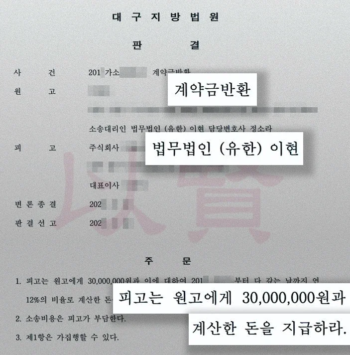 계약금 반환 소송을 통해 결국 전액 돌려받았습니다