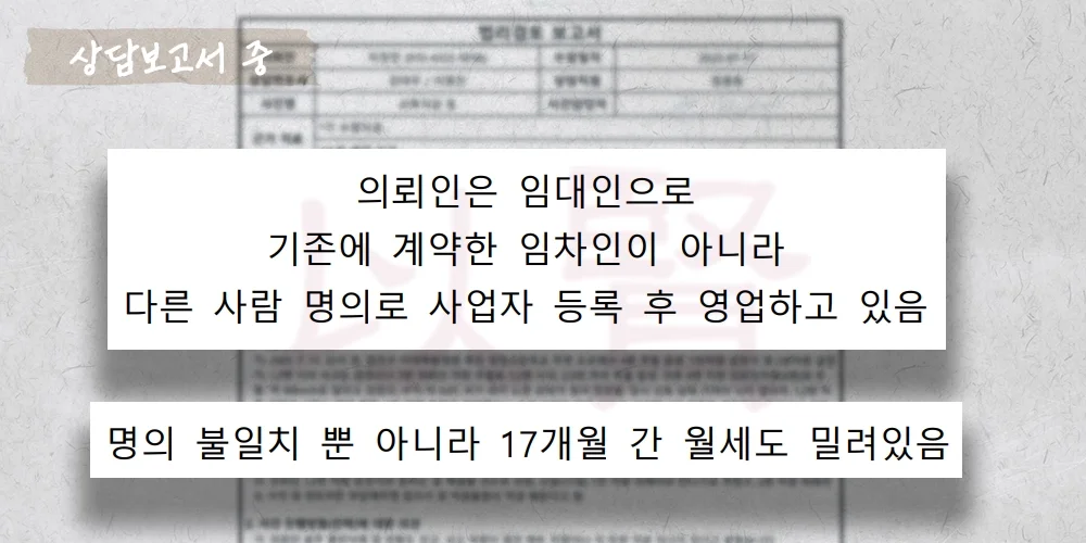실제 점유자 확인 (사업자등록, 월세 입금 내역, CCTV 출입기록 등),