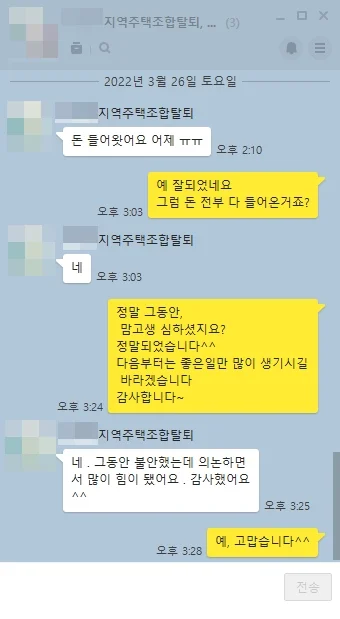 처음 내용증명을 보냈을 때만 해도 해당 조합의 반응은 차가웠습니다. “사업은 곧 재개된다”, “환불은 어렵다”는 말만 반복했죠. 하지만 저희는 물러서지 않고 세 차례에 걸친 내용증명과 수차례의 협의 끝에 조합이 안심보장증서에 명시된 환불 약속을 더 이상 부정할 수 없게 만들었습니다.