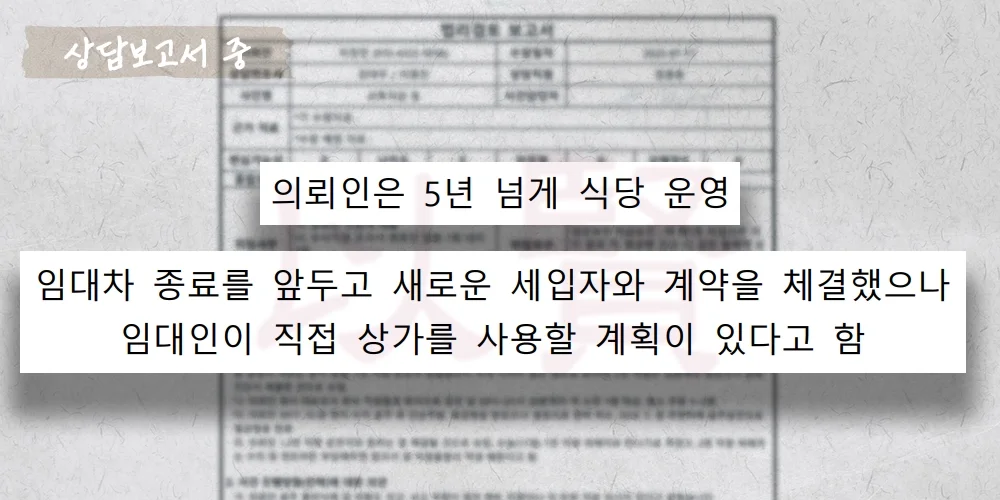 하지만 오늘 설명할 사건의 의뢰인은 건물주가 “이 가게는 내가 직접 쓸 거야”라며 새 세입자와의 계약 자체를 막았습니다.