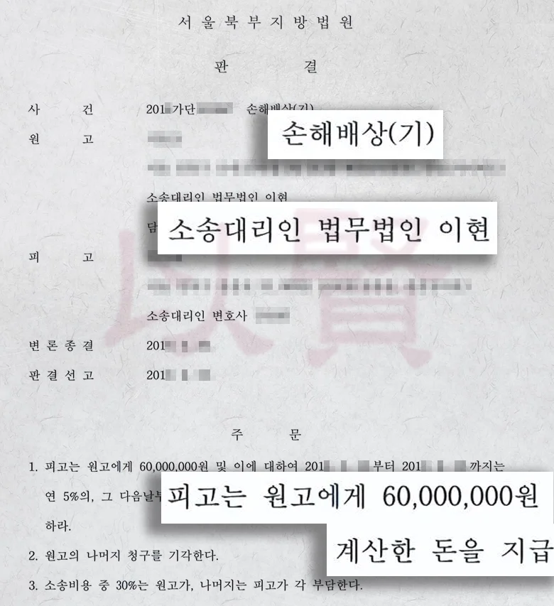 한나 씨는 8,500만 원을 청구했지만, 법원은 감정가(7,500만 원)의 80% 수준인 6,000만 원 배상을 인정했습니다. 실제로 받을 수 있는 금액의 최대한을 얻어낸 셈이죠.