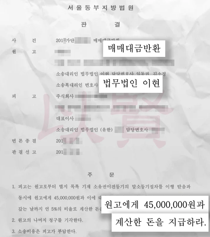 저희는 즉시 피고의 행위가 단순한 실수가 아닌 명백한 계약 위반(채무불이행)임을 주장했습니다. 피고 측은 재판 과정에서 "원고가 등기비용을 늦게 줬다", "나중에 해결해 줄 수 있다"며 책임을 회피하려 했으나, 법원은 이를 받아들이지 않았습니다.