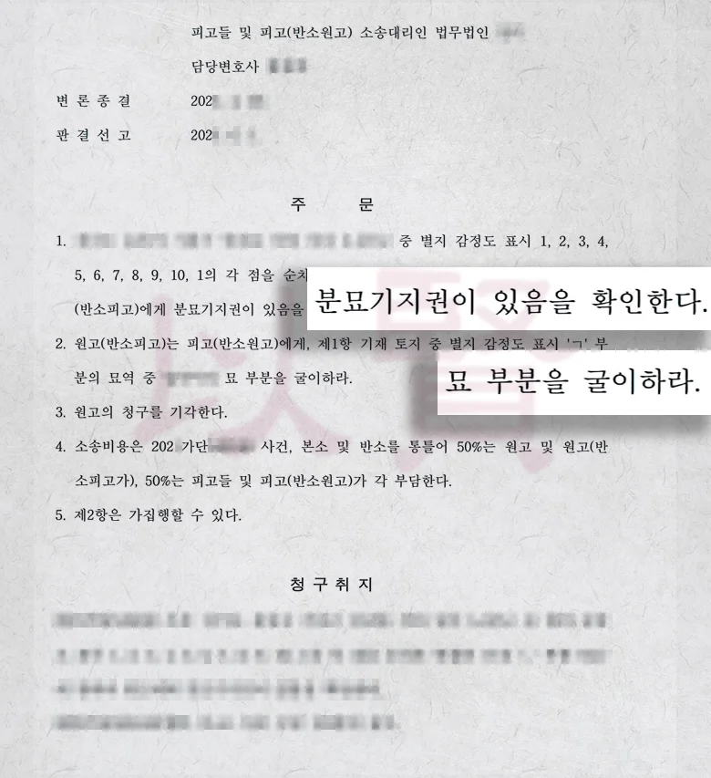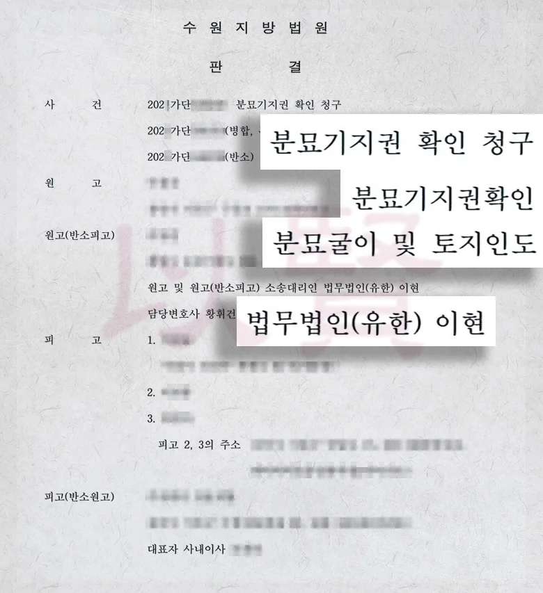 오늘은 제가 실제로 진행했던 사건을 바탕으로, 합장된 분묘와 분묘기지권의 범위가 어떻게 갈리는지, 그리고 그 과정에서 변호사가 어떤 역할을 했는지 쉽게 풀어드리겠습니다.