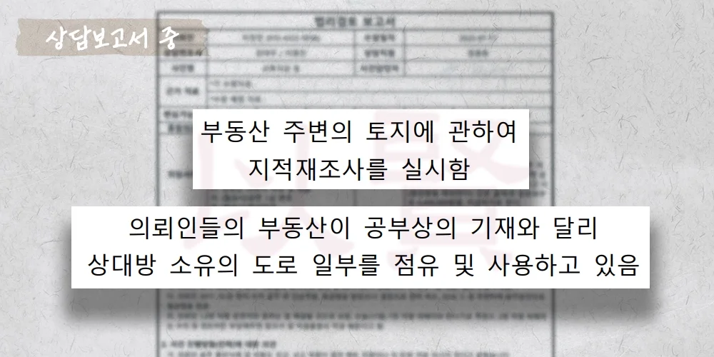 → 지적도, 담장 사진, 주민·시공업자 진술 등으로 착오 점유 정황을 확인.