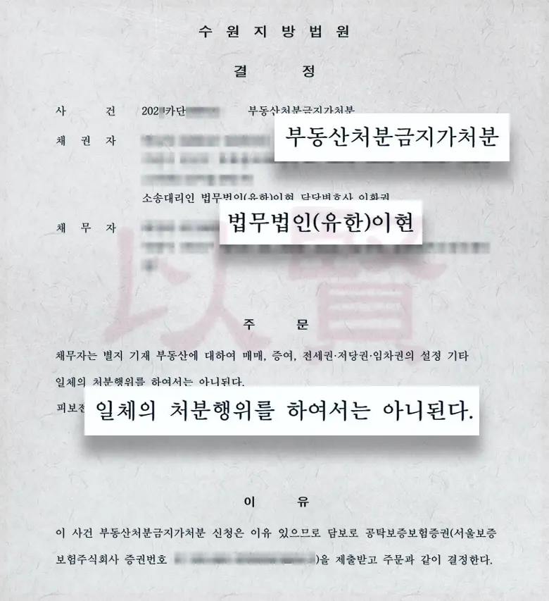 법원은 저희 측의 신청을 받아들여 2020년 2월 12일, 부동산 처분금지 가처분 결정을 내렸습니다. 제 3자에 대한 처분이 법적으로 제한이 된 거죠.