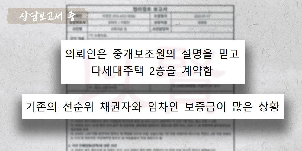 의뢰인 K씨는 서울 다세대주택 2층을 전세보증금 1억 2,500만 원에 계약했습니다. 문제는 이 주택이 집합건물로 구분등기조차 되어 있지 않은 미등기 다중주택이라는 점이었죠. 게다가 중개보조원은 다음과 같이 설명했습니다.