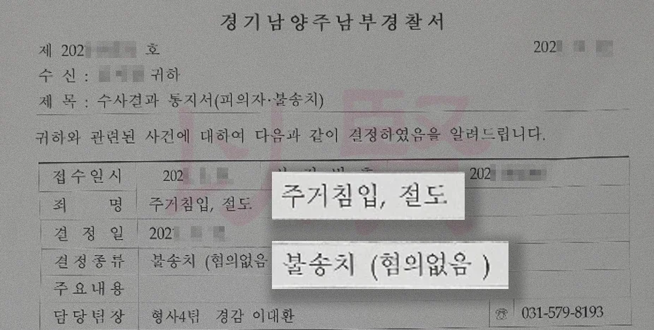 처음 고소장을 받았을 때 김민수 님은 성실히 살아왔는데 주거침입절도 전과자가 될 수 있다는 생각에 극심한 불안에 떨었습니다. 하지만 경찰로부터 혐의없음 통지서를 받은 순간, 그제야 안도의 한숨을 내쉬며 감사의 마음을 전했습니다.
