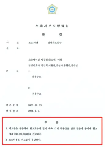 법원은 "임대인은 의뢰인에게 2억 4,500만 원 전액을 지급하라"는 판결을 내렸습니다.