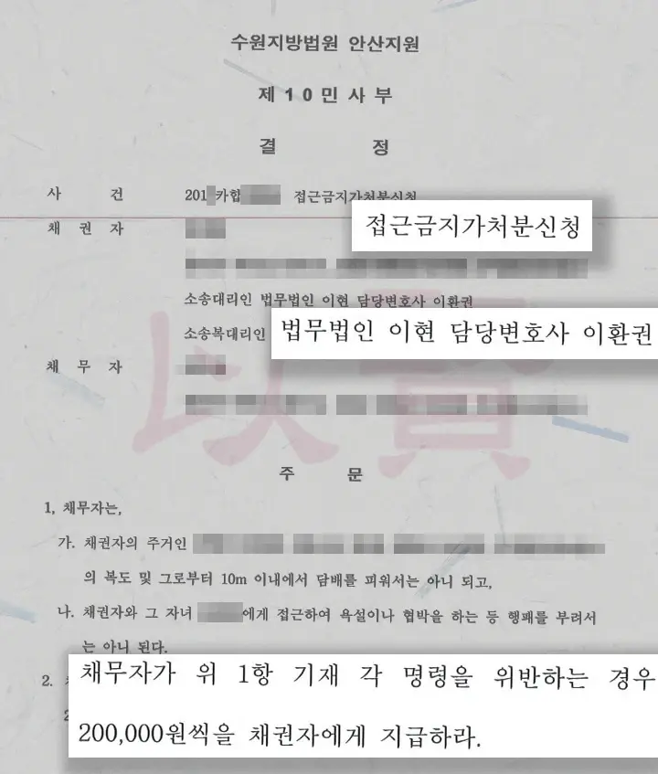 이러한 가처분 결정은 상대방에게 법적인 경고를 주는 동시에, 향후 발생할 수 있는 추가 피해에 대한 금전적인 압박 수단이 되어 의뢰인 가족을 보호하는 실질적인 방패가 되었습니다.
