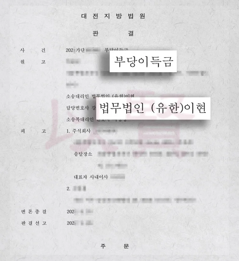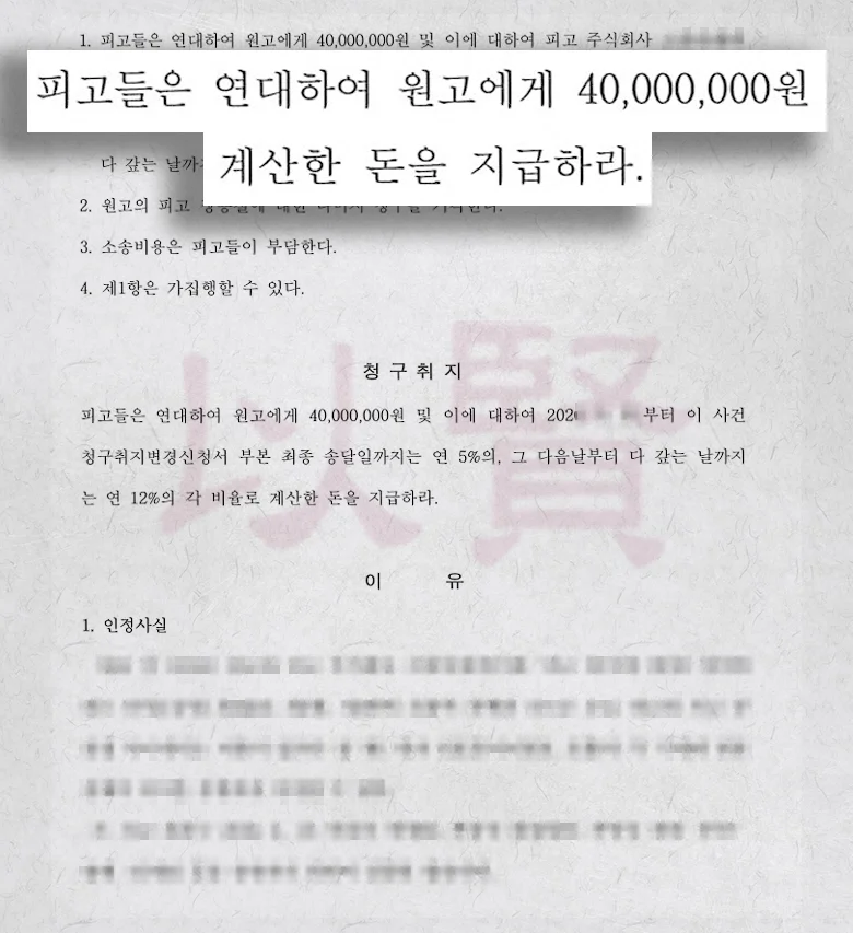 그 결과, 법원은 보증서의 효력을 연대보증으로 인정, 의뢰인이 수개월간 돌려받지 못했던 부당이득금 4천만 원을 모두 회수할 수 있었습니다.