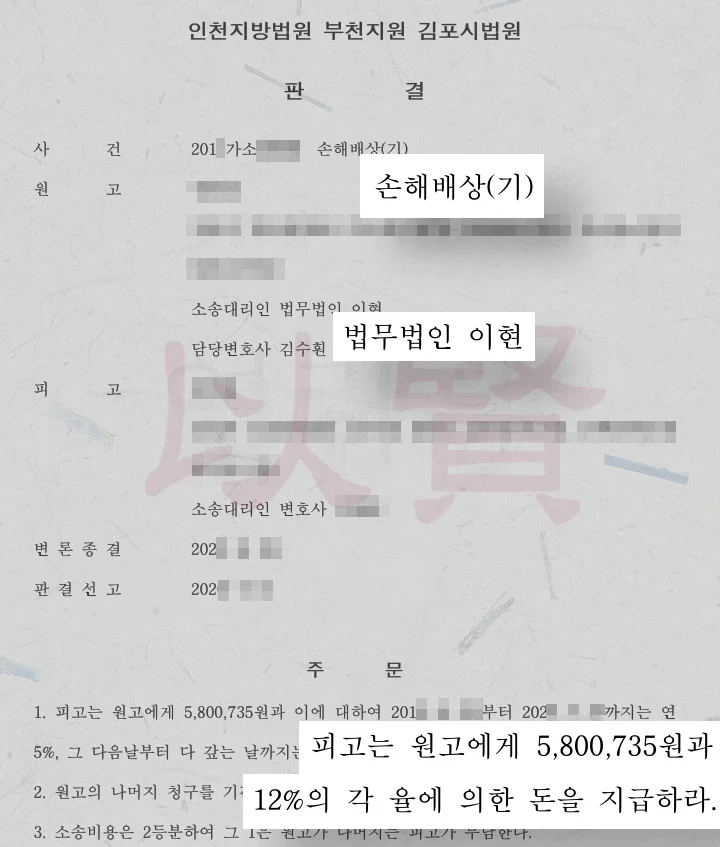 저희 법무법인 이현에서 직접 수행했던 윗집 누수 손해배상 청구 사례를 통해 구체적인 대응 방안을 살펴보겠습니다.